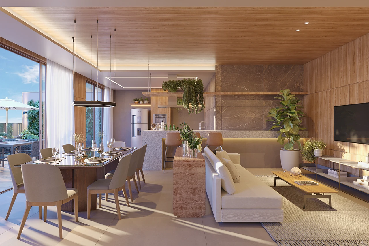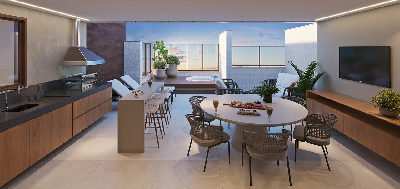 O Versat Home Resort é para quem valoriza o tempo e busca exclusividade. Em um terreno elevado, proporciona vistas incríveis e ventilação privilegiada. A varanda gourmet convida a apreciar cada pôr do sol com a cidade aos seus pés.